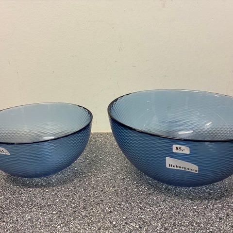 Holmegaard glas skåle sæt "provence "bestående af tre skåle i klart glas. Per Lütken Skålene har forskellige størrelser og kan anvendes til servering eller opbevaring i køkkenet.