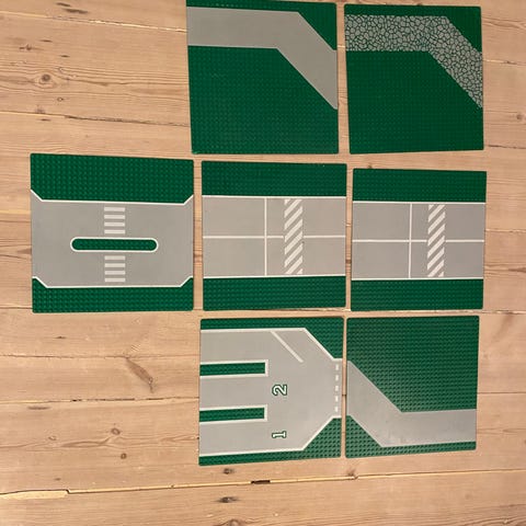 LEGO City vejplader og krydsningsplader i sort med hvide vejstriber og fodgængerfelter. Består af rektangulære og kvadratiske plader, der kan bruges til at bygge vejnet i LEGO City temaet. Sælges samlet 75kr