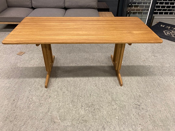 Stine Weigelt har tidligere skabt en pindestol til FDB Møbler. I forlængelse har hun skabt sofaborde og en skammel, der bærer den århusianske designers umiskendelige signatur. Lige som stolen har skamlen og sofabordet tre ben samt den fine lille detalje, hvor den øverste ende af benet møder bordkanten og danner en lille tangerende cirkel. Sofabordet findes i forskellige størrelser, og fungerer sammen som indskudsborde. Når man skal have lidt mere bordplads foran sofaen, kan et ekstra bord nemt findes frem. Bordet er designet til dagligt brug i hjemmet. Med den rette pleje kan dette bord holde mange år frem i tiden. Bordet er fremstillet i massivt egetræ. Egetræ er et naturmateriale, og der vil derfor være naturlige variationer i bordets overflade. Dette gør bordet unikt. Der vil aldrig være to borde som er helt ens.