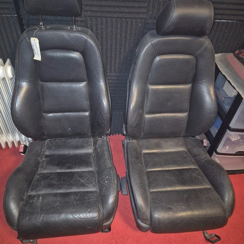 Audi E-tron 50 fra 2021 bilsæder 2x i sort læder. Sættet består af to sæder med tilhørende hovedstøtter. Sæderne er i pæn stand.
