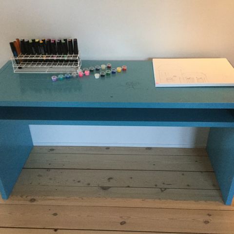 Det står i flot stand, men har lidt skrammer da børnene var glade for det. Havde desværre ikke mulighed for at tage billeder af bordet og stolene, da det står i en kælder pt. Nypris ca 4500,-