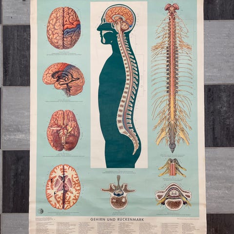 Skoleplakat med detaljerede illustrationer af forskellige insekter, larver og sommerfugle i naturlige farver. Der er billeder på begge sider af plakaten, som er monteret på tykt pap og med metal ophæng. Original fra biologi lokalet