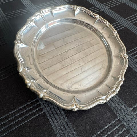 Glas bakke med bølget kant, diameter 7.5 cm. Bakken har en rund form og er velegnet til servering eller dekoration.