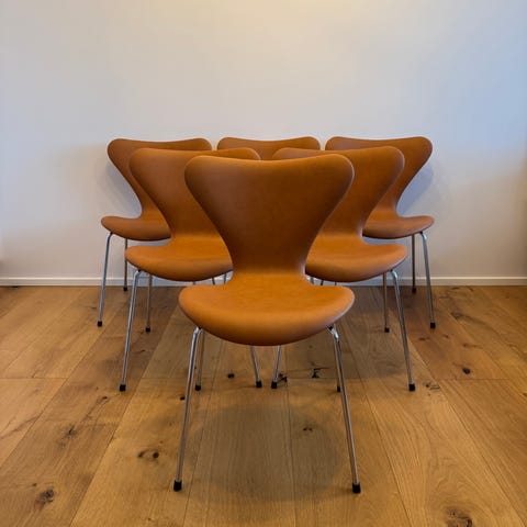 Brugte 7er fra Fritz Hansen polstret i sort læder