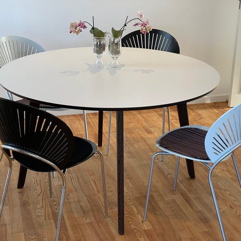 Bordet kan skilles fra benet for nemmere transport. Kan afhentes på Vesterbro i København.