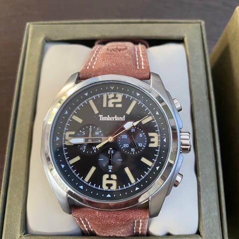 Timberland TDWGB0041006 herreur med sort urskive og lysebrunt læderarmbånd