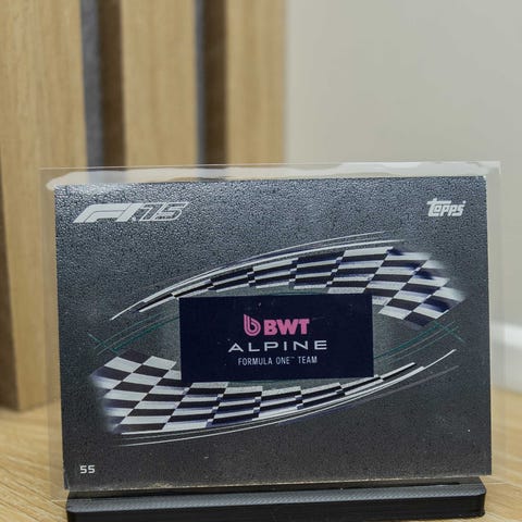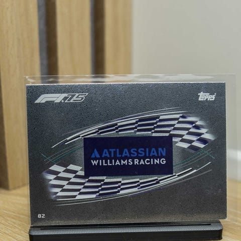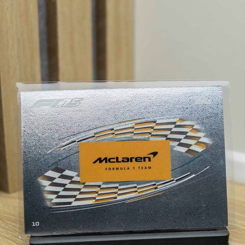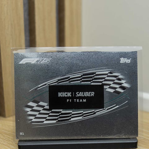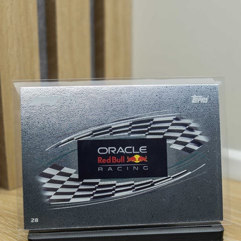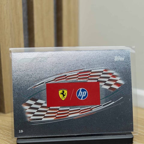 Base Team Logo Haas F1 Team kort fra 2025 i flot stand. Kortet sendes i Ultra Pro sleeve og toploader, som er inkluderet i prisen. Ideelt til F1-fans og samlere.