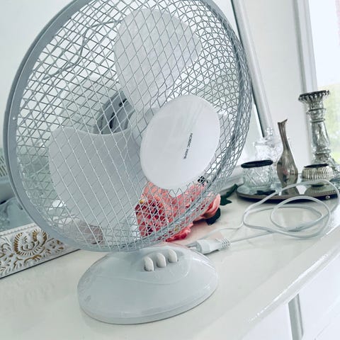 To bordventilatorer i hvid og sort. Begge virker som de skal.