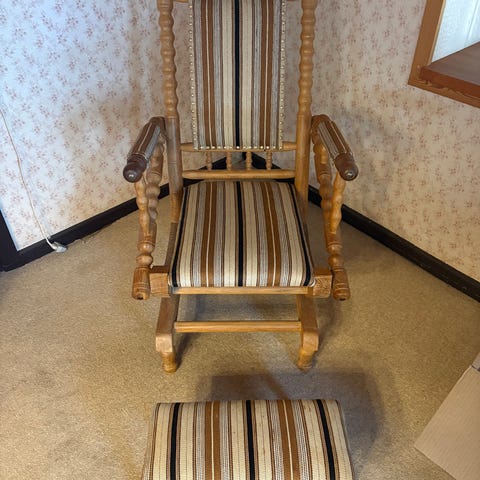 Fin gyngestol der han brug for en smule lim. Det ene ben er blevet gumlet lidt i af en hvalp. Den er bestemt værd at give lidt kærlighed.
