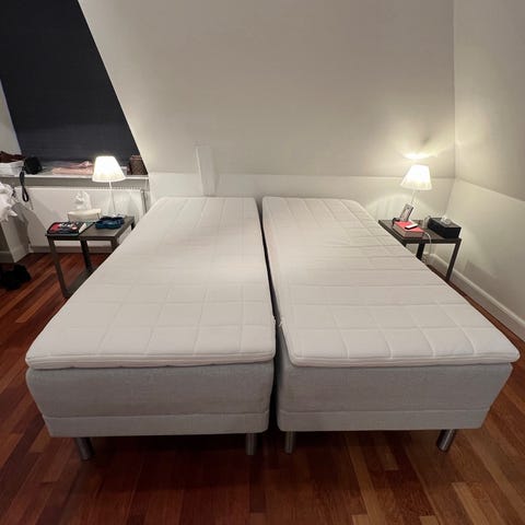 • 2 x 90x200 cm, som kan sættes sammen til dobbeltseng (1 medium + 1 fast)