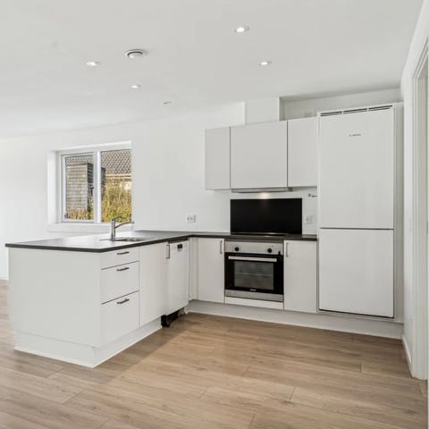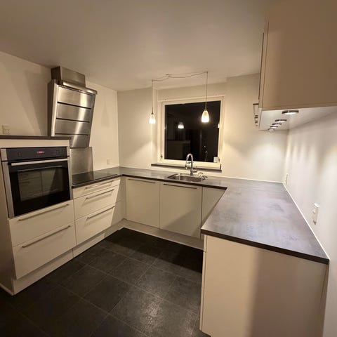 Selve køkkenet er ældre men fejler intet. Prisen er for hvidevarerne - det er frivilligt at medtage elementer eller ej.