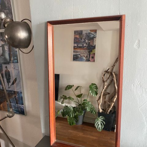 Stort retro vægspejl med ramme lavet I en form for plast