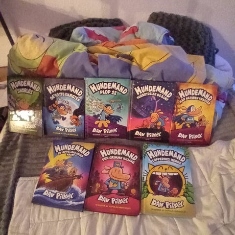 Hundemand bøger bind 1-6 af Dav Pilkey.
