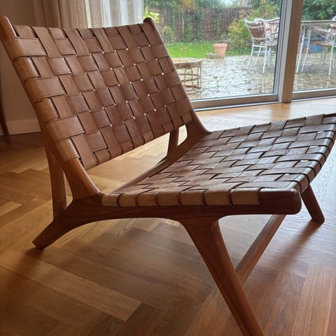Lænestole teaktræ Læder Brun Chair teak wood leather Brown