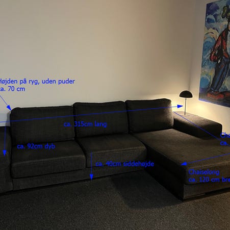 Fra huset med hunde, men altid beskyttet med sofabetræk (Så uden pletter eller lugte) som vist på billederne, kan alle betræk fjernes og vaskes. Let misfarvning i spidshjørnet af chaiselong en. 5 store sofa-rygpuder medfølger. Bud er velkomne.