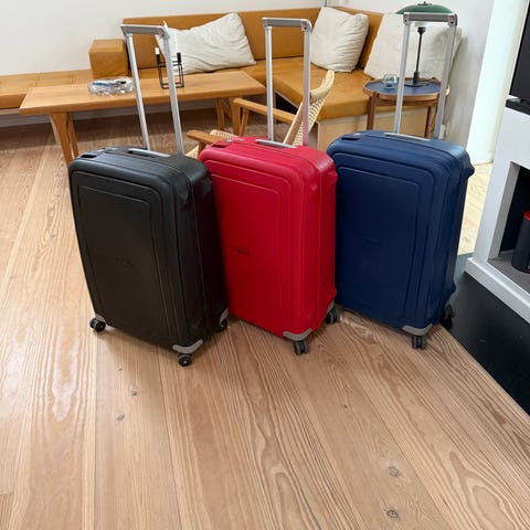 Samsonite kuffert sæt i plast til unisex brug. Sættet består af to kufferter med teleskophåndtag og integrerede låse. 4 hjul pr. kuffert. Lys og sikkerhed. Indvendigt har kufferterne stropper til fastgørelse af indhold og rum med lynlås til organisering. Farven er sort.