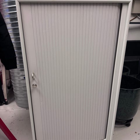Montana arkivskab med hængemapper og skilte. Vægtklodser i bunden, så det ikke vælter ved udtræk af skuffer. Højde: 60 cm (inkl hjul), bredde: 40 cm dybde: 60 cm. Passer fint under skrivebord