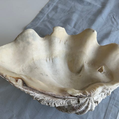 Stor ægte muslingeskal fra Kæmpe konkylie (Tridacninae)