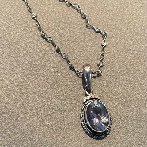 Ametyst spids krystal 5,5 cm med 80 cm lang Gifa 925 sølvkæde.