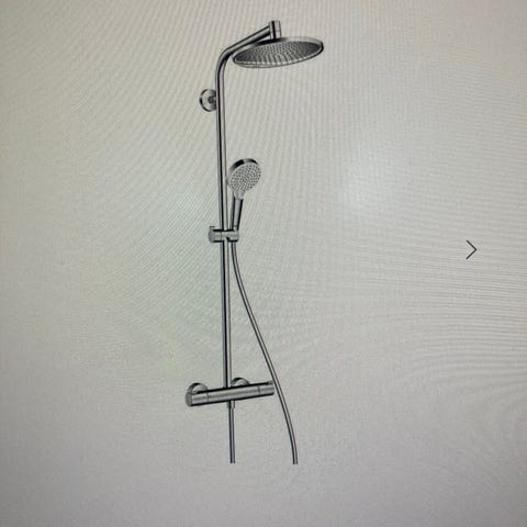 Hansgrohe Crometta 240 brusearmatur sæt i krom med brusehoved, håndbruser, bruseslange og justerbar brusestang. Sættet er designet til installation i badeværelse og leverer en jævn vandstråle til brusebrug.