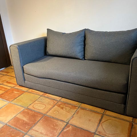 3-personers sofa i stof. Sofaen kan nemt laves om til en seng. Sæde- og ryghynder i skum. Med opbevaringsplads. Udslået liggemål 130x192 cm. B192 x H83 x D83 cm