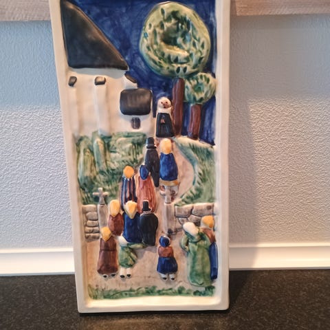 Tre smukke relieffer / fliser fra Søholm. Alle tre med mærkat og nummer bagpå.