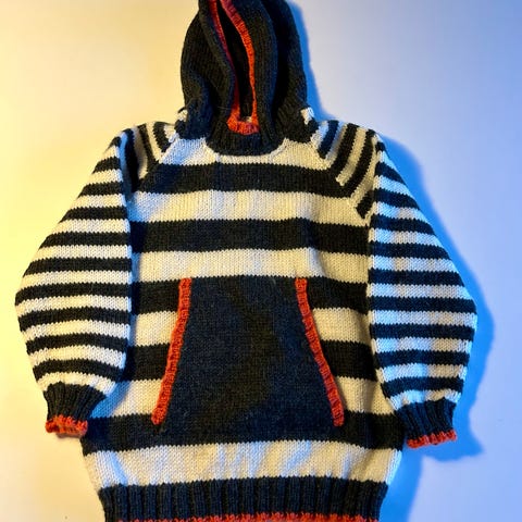 Super fin hjemmestrikket uld trøje med hætte - str. 10 år