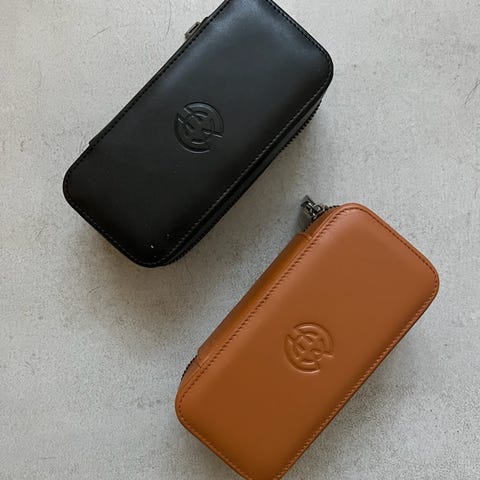 Dual time travel case i full grain læder fra danske Henry Archer. Ny og ubrugt i original gaveæske.