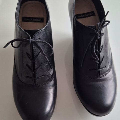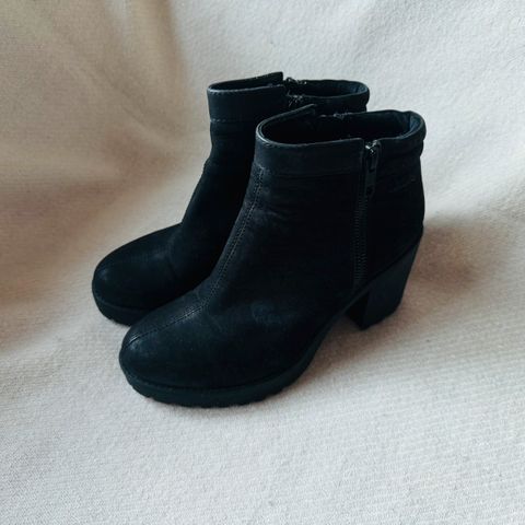 Fine sorte ankelstøvler fra Vagabond i str 38. Dejlig behagelige og 100% ægte læder. Lukkes med lynlås i siden (snøredetaljerne er bare til pynt). True to size. Brugt meget kortvarigt, fremstår derfor som ny.