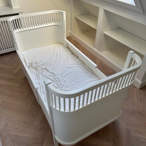 Der medfølger forlængerstykke til madrassen samt tremmer til begge sider, hvis den skal bruges som babyseng. 1 stk Sebra vådliggerlagen og 1 stk almindeligt Sebra-lagen kan også medfølge.