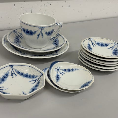 Bing & Grøndahl kaffekop og underkop i blå/hvid porcelæn