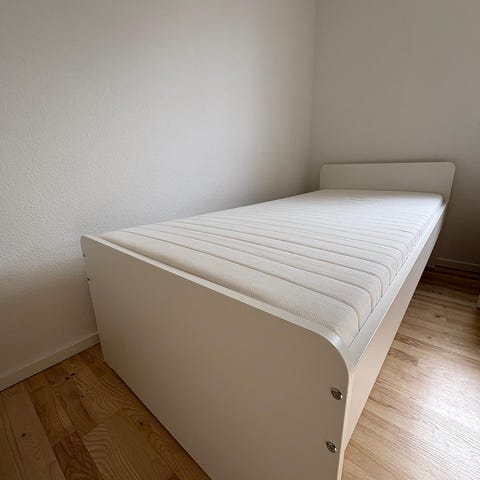 Seng fra jysk, købt for omkring 4 år siden. Er brugt som gæsteseng og er derfor i god stand. Enkelte kradsemærker fra vores kat på sengens to hjørner (se billede).