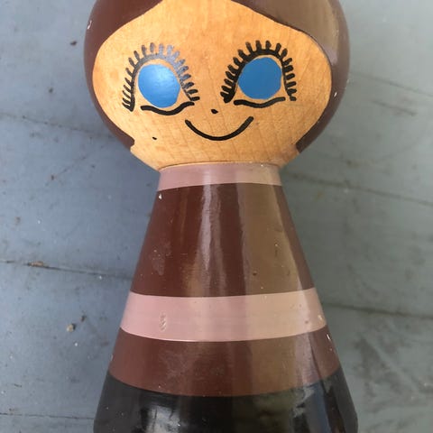 Helen & Mogens Lyholmer: Gul lysestage med blomsterranke med lilla blomster. Original mærkat. I bunden kan man se at den i sin tid er købt i Magasin. Lette brugsspor Højde 5cm og diameter 5,5cm. Pris kr 100