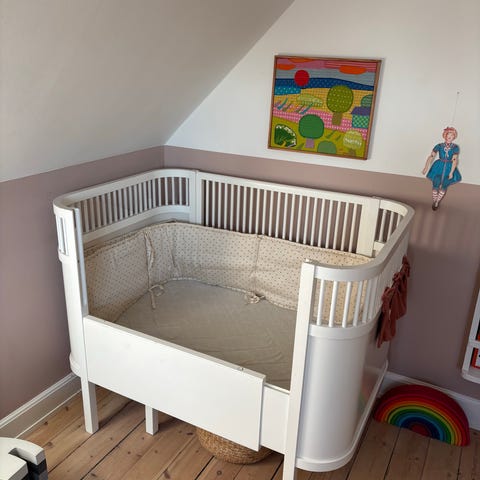 Den fungerer fra nyfødt som tremmeseng og senere kan den trækkes ud som juniorseng.