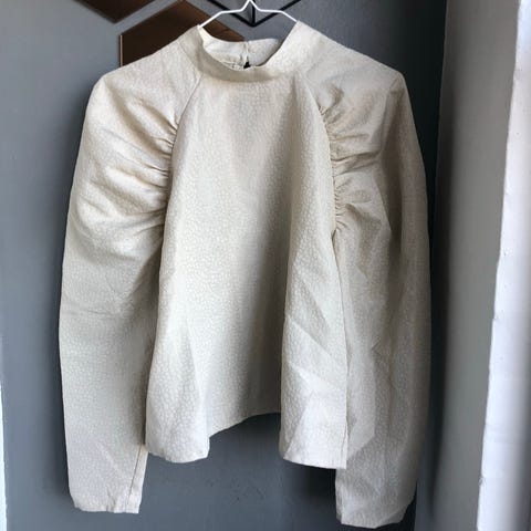 Fin bluse med puff ærmer og perlemorsknapper fra H&M.