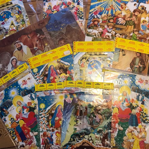 JCO Lågejulekalendere. Uåbnede! Julekalender lavet af papirsplader med farverige julemotiver. Indeholder billeder af julemand, slæde, juletræer og vinterlandskab. Passer til brug som dekoration eller adventskalender. Materiale: pap. Farverne er primært blå, rød, grøn og hvid. (Se også mine andre annoncer).