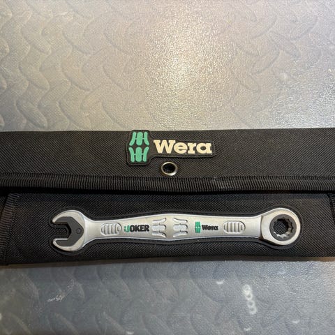 Wera kombi-skraldenøgler sæt med størrelser fra 8 mm til 19 mm. Nøglehovedet har skraldefunktion, og hver nøgle har farvekodede markeringer for nem identifikation. Fremstillet af metalmateriale og leveres i en sort opbevaringsrulle. Kun brugt til udstilling ny pris