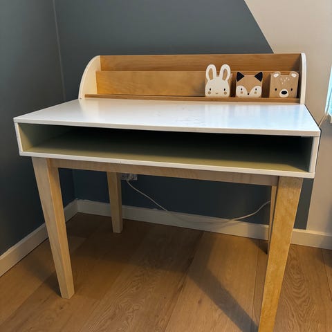 Et af benen på skrivebordet sidder en smule løst, men kan nemt fixes med lidt trælim.