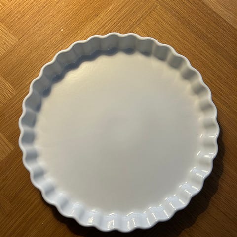 Tærtefad med bølget kant. Fadet har en diameter på 32 cm og en højde på 4 cm. Velegnet til servering eller bagning.