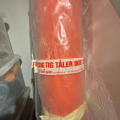 Nogen der vil købe en rulle med orange møbellinoleum? Bredde er 2 m og tror at der er 1,5 meter på den; tænker 500,-