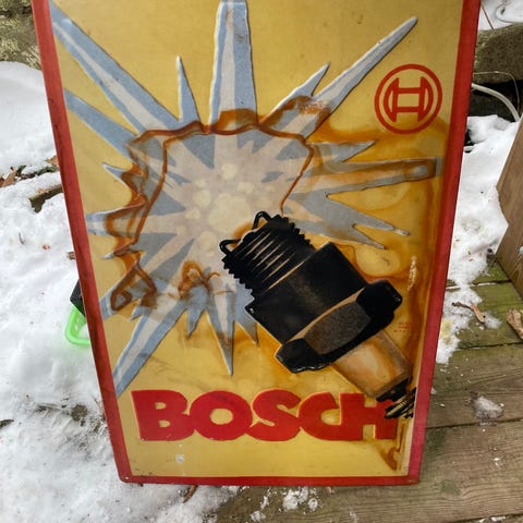 Store Bosch reklame figurer med tændrør og bilbatteri