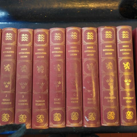 Nordisk Konversations Leksikon er en del af en nordisk encyklopædi. Bogen har en rød hardcover-indbinding og indeholder tekst og illustrationer. Den er udgivet af Det Nordiske Konversations Leksikon Forlag i København.
