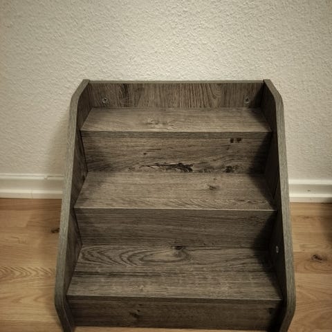 Hundetrappetrin i grå farve med højder på 35 cm og 45 cm. Trinene er designet til at hjælpe hunde med at nå højere steder.