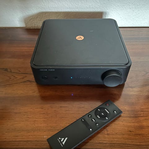 Argon forstærker med rigtig god lyd til prisen. Du kan sætte din pladespiller direkte til og streame musik over Bluetooth. Det er smart og kompakt :)