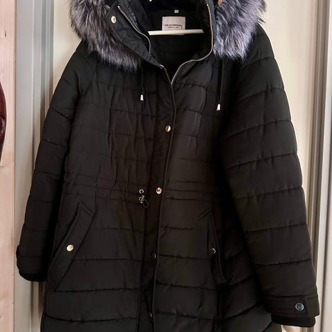 Pelsen til hætten er aldrig blevet brugt og kan knappes fast.