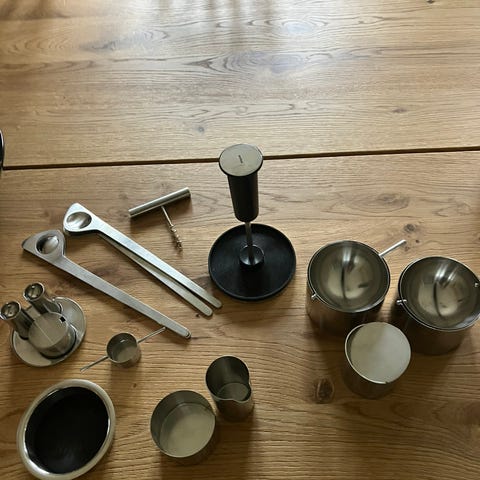 Glasbrikker i holder ( rustfri stål - brugsspor): 200kr
