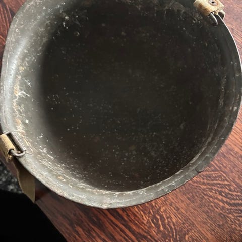 Hjelm, CF krone,fra 1960erne.,str. medium, militær, CF militær hjelm, mrk CF under krone, medium med inderhjelm , pæn stand, med afskaldninger på inderhjelmen, vurdering 500, kom med et bud