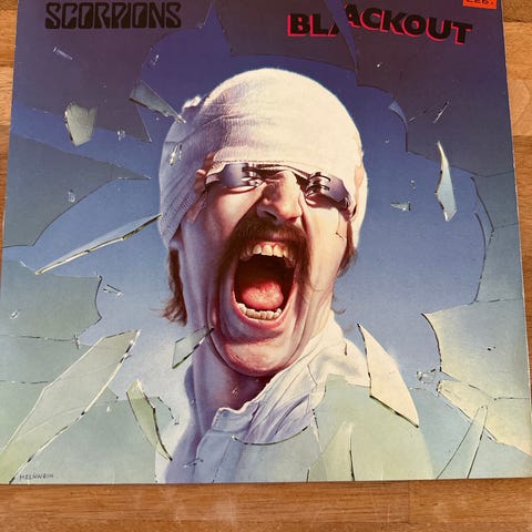 Scorpions Crazy World vinylplade med cover og labels fra Mercury. Indeholder sange som "Wind of Change" og "Rock You Like a Hurricane". Sort vinyl med originalt cover med nøgle- og øjemotiv.