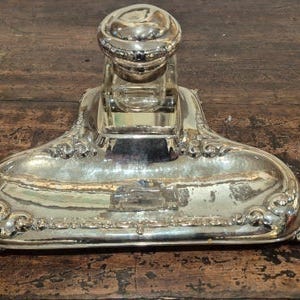 Skrivebordsarrangement til blæk og skriveredskaber, Hjorth, motiv: Skrivebordsarrangement, 18 cm langt og 5cm højt. Uden skader.