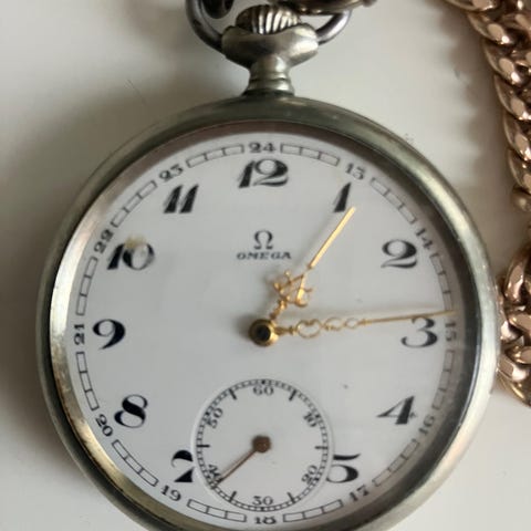 Omega lommeur. Urkasse måler 40 mm. Uret "går" ikke. Om det er sølv vides ikke. Der er diverse stempler på uret og der er indridset "925". Sælges som defekt. Prisen er fast. Kan afhentes i Odense. Evt forsendelse 45 kroner. Telefon 71701243